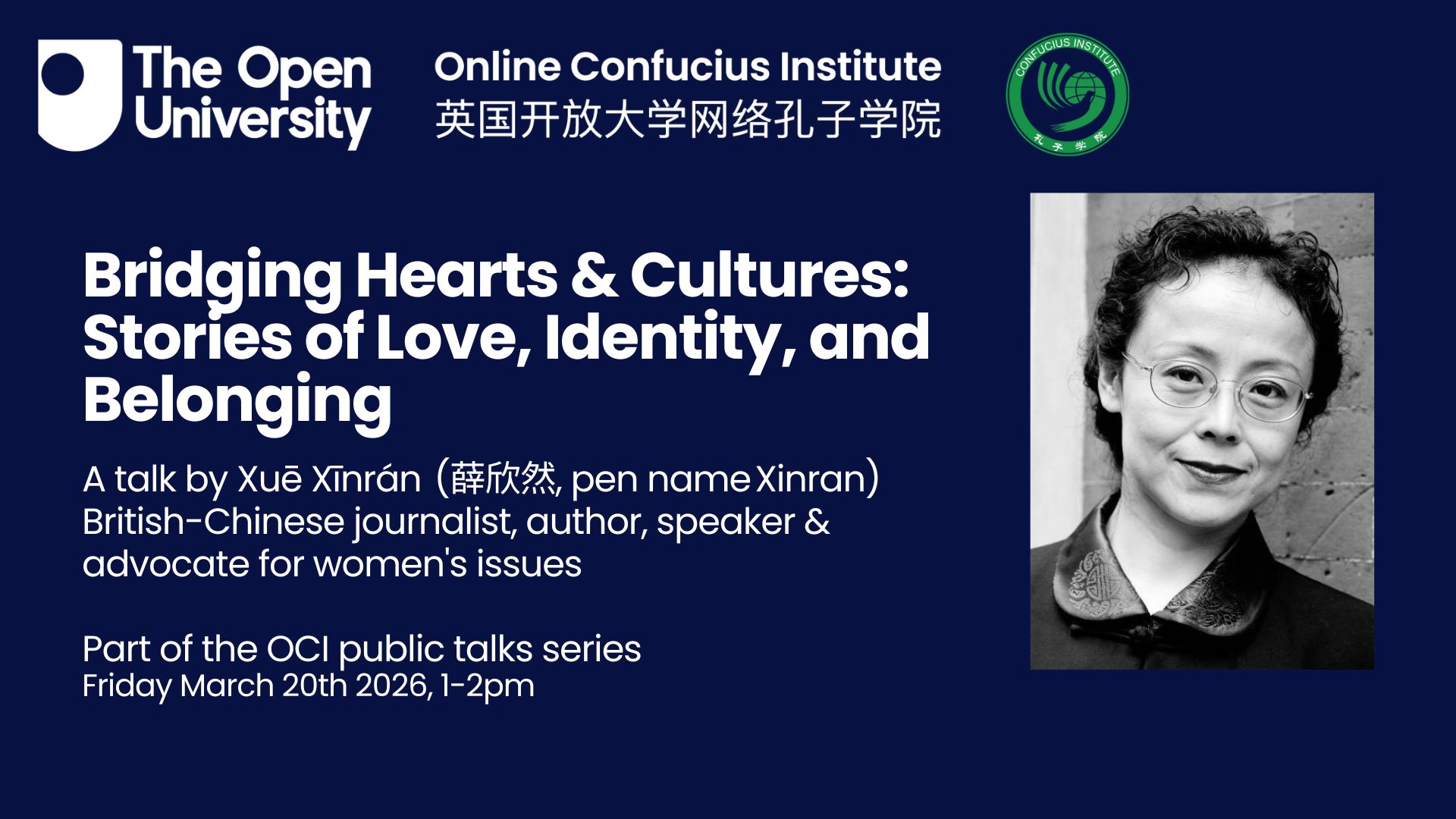 The talk will be held on MS Teams. A recording will be made available afterwards and published on the Open University's Online Confucius Institute website.